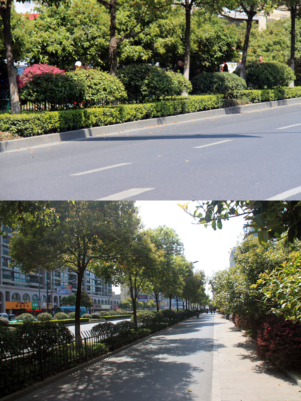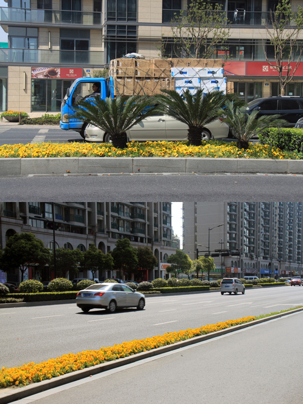 鳳起東路上秋濤路至新塘路的這段綠化,正是由公司施工的。春日明媚的陽光下,這段道路中間的隔離帶里,修剪得整齊一致的灌木,一眼望去,綠色滿目,特別是鵝黃色的嫩葉,有著不同于老葉的青翠,昭示著生機(jī)無限,使司機(jī)在行車的途中視野清晰、開闊通透;道路兩側(cè)的隔離帶里,枝葉細(xì)密的香樟擋住了直射下來的陽光,灑下滿地綠蔭,為行人撐起了一道清涼的“綠傘”;十字路口的小花壇里,黃色、紫色的三色瑾燦爛地盛開,為等待紅燈的行人和司機(jī)帶來春天的氣息。整條道路的綠化看起來清新養(yǎng)眼,不管是開車行駛的司機(jī)還是慢步而行的路人,都能感受到閑適和愜意。