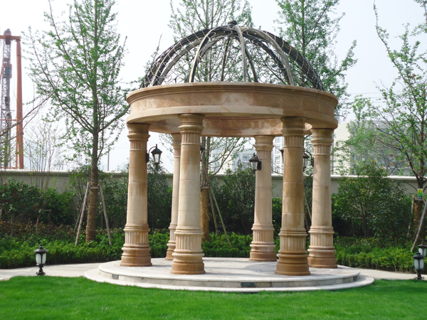 更引人注目的,還有銷售展示中心前面的雕塑噴泉,該噴泉運(yùn)用花崗巖整石雕刻拼接而成,工藝極其復(fù)雜,自上而下不斷灑落的水花,營(yíng)造出一片清涼;無(wú)以復(fù)加的鏤空鐵藝圓頂繁復(fù)花紋和拱門的石材立面裝飾的皇家景觀亭,精致中透露出大氣;潺潺溪流、霧氣繚繞的人工溪澗,如夢(mèng)似幻;大面積的高爾夫果嶺草坪蜿蜒起伏,華貴雍容……