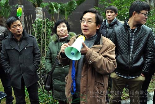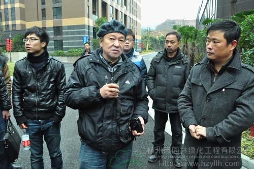 每到一個工程現(xiàn)場,工地負責人都先介紹工程的施工情況,然后,帶領大家進行參觀,并隨時解答觀摩組一行提出的各種問題。每項工程觀摩結束的時候,三位專家都會集中點評,從苗木種植、植物搭配、水景營造、地形整理等各方面指出工程施工中存在的優(yōu)勢與不足,并提出需要改進的地方。