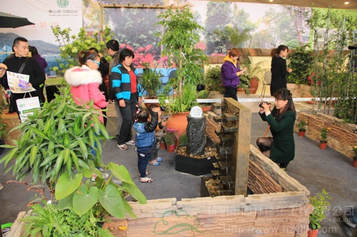 22日上午,浙江(中國)花木城的展廳里人潮涌動,自然的濕地景觀,古樸的庭院,美輪美奐的花境園,超大的“會呼吸”的綠墻……風格迥異的情景展示讓人目不暇接。而在展區(qū)的西北角,是一個綜合型展區(qū):一排排透明的玻璃瓶里展示著研發(fā)中心的組培苗;整齊擺放的穴盤里是生產中心的扦插苗;后面的是運營中心造型優(yōu)美的組合盆栽、園藝飾品、盆器等;中間的庭院展示區(qū),低矮的墻角花壇里,一蓬紅艷艷的杜鵑,向人們吐露著春的美麗,生動的流水點綴一旁,引得大人和孩子爭相上前拍照;最里面一個木平臺上擺放著一套戶外家居,既是采供中心人員的洽談區(qū),也是景觀的一部分。這,就是杭州市園林綠化工程有限公司的展區(qū)。