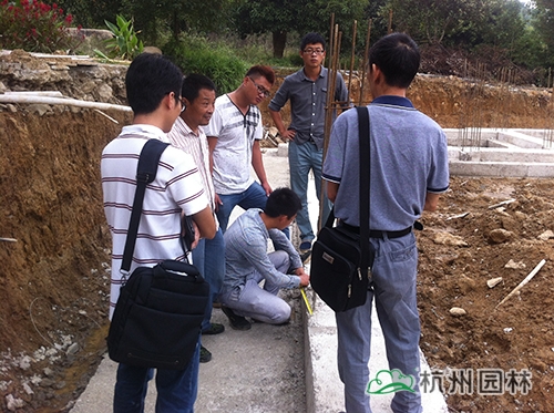 目前,安吉項(xiàng)目部按照施工進(jìn)度計(jì)劃已完成了售票房、公廁、山門、入口亭子、攝香居庭院等的基礎(chǔ)結(jié)構(gòu)施工。檢查組一行到項(xiàng)目部后,先對(duì)施工現(xiàn)場(chǎng)進(jìn)行了全面細(xì)致的檢查,指出了存在的問(wèn)題,同時(shí)將正確的操作程序?qū)κ┕と藛T進(jìn)行詳細(xì)講解,要求施工人員嚴(yán)格按規(guī)范操作,保證工程質(zhì)量。接著,工程管理部、成本部和財(cái)務(wù)部對(duì)項(xiàng)目部進(jìn)行交底工作,并提出相應(yīng)的要求。