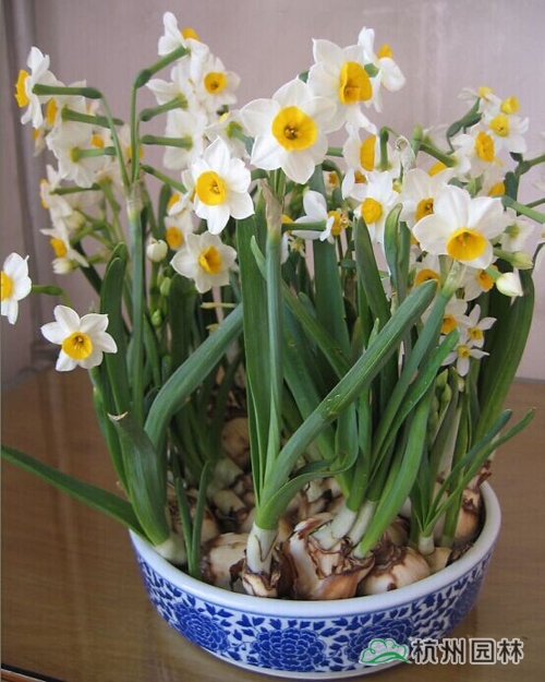 水仙:水仙是冬季常見(jiàn)的花卉之一,通常種植的水仙是指中國(guó)水仙,其姿態(tài)玲瓏可人,清香撲鼻,在寒冬臘月可開(kāi)花;而洋水仙一般在春季開(kāi)花,色彩艷麗,形態(tài)壯美,但大多缺乏香味,兩者各具特色。但是,無(wú)論中國(guó)水仙還是洋水仙,種球的優(yōu)劣決定著花的質(zhì)量,因此,在選購(gòu)種球時(shí)要挑個(gè)大、硬實(shí)、側(cè)芽少的種球。中國(guó)水仙有土培和水培兩種種植方法,水培法即將催芽處理后的水仙種球直立放入淺盆中,加水淹沒(méi)鱗莖三分之一為宜,盆中以玻璃球、鵝卵石等固定。洋水仙不宜用作水培且喜冷涼環(huán)境,過(guò)于溫暖會(huì)導(dǎo)致葉片徒長(zhǎng),較喜水,花期時(shí)適量增加水分可延長(zhǎng)花期。