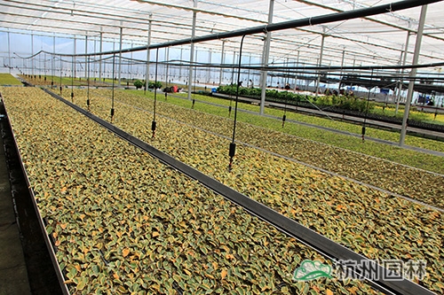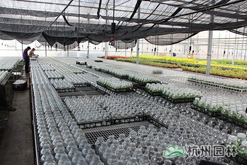 杭州畫境種業(yè)有限公司徑山基地基礎建設已于2014年基本完工,包括蔭棚地塊建設、基質攪拌、辦公室、倉庫等,其中,新建的溫室大棚已全面投入使用,由公司自行組培的16萬棵火焰南天竹也進入了煉苗階段,畫境種業(yè)的員工和工人們一起,通力合作,爭取以最高的效率完成煉苗工作,總經(jīng)理黃民強也親臨現(xiàn)場,給大家指導與支持。在領導的關心下,大家信心倍增,計劃在一周內完成全部煉苗工作?;鹧婺咸熘?,是公司組培研發(fā)生產(chǎn)的新品種,它植株低矮,枝葉密集;幼葉及冬季葉亮紅色至紫紅色,初秋葉變紅色,比南天竹紅色葉深,變色期早;喜溫暖濕潤、通風良好的半陰環(huán)境,較耐寒,生長較快,在園林景觀中的應用比較廣泛。